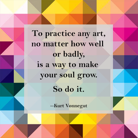 traduction : la pratique d’un art, quel qu’il soit, et peu importe la virtuosité avec laquelle vous le pratiquez, est une façon de libérer votre âme… alors faites-le… – Kurt Vonnegut