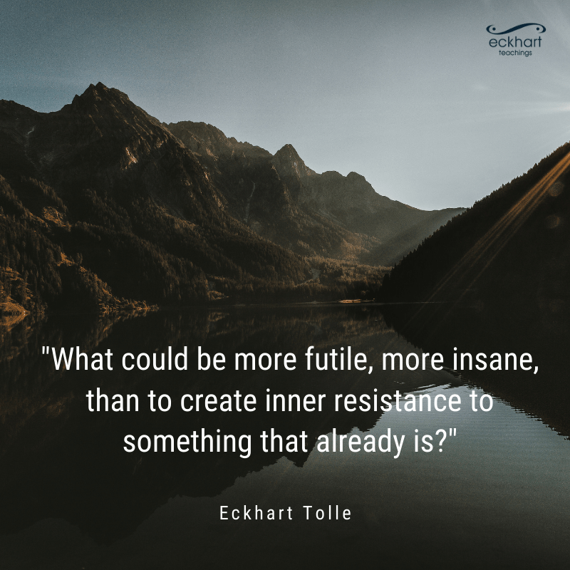 traduction: qu’est-ce qui pourrait être plus futile, plus malsain que d’opposer une résistance interne à quelque chose de déjà présent ? – Eckhart Tolle