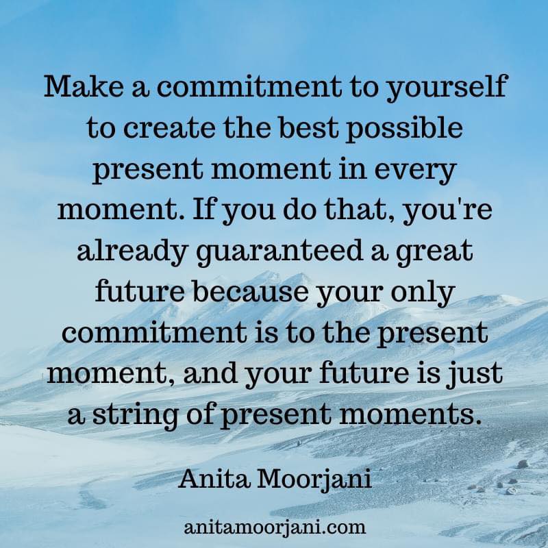 traduction: fais-toi une promesse: soit de faire de chaque moment le meilleur moment qui soit… si tu fais cela, tu es certain(e) d’avoir le meilleur futur possible car tu t’engages envers le moment présent, et l’avenir n’est qu’un enchaînement de moments présents