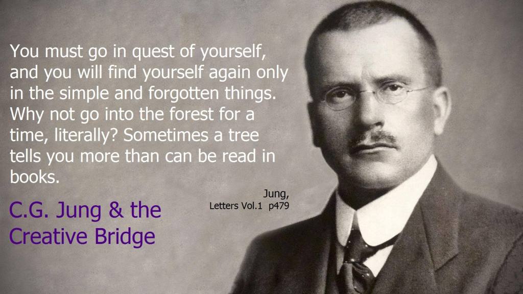 traduction: tu dois aller à la rencontre de toi-même et tu te retrouveras seulement dans les choses simples et oubliées… alors pourquoi ne pas aller dans la forêt pendant un certain temps, littéralement ? parfois un arbre peut t’en dire plus que ce tu peux apprendre dans un livre… – C.G. Jung