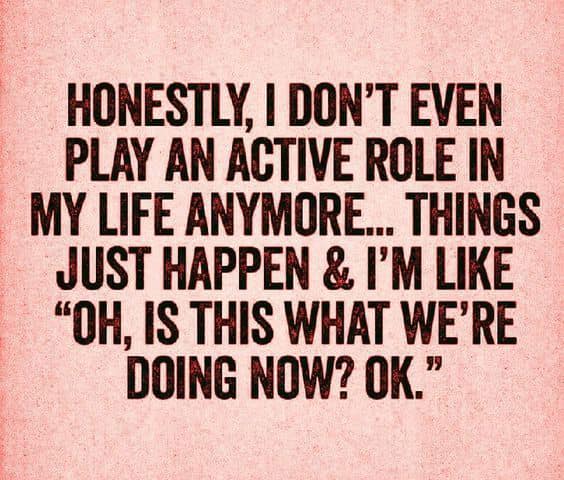 traduction: sincèrement, je ne joue même plus un rôle actif dans ma vie désormais… les choses ne font qu’arriver et à chaque fois je me dis: Oh c’est ce qu’on fait maintenant ? OK d’abord…