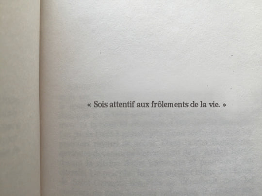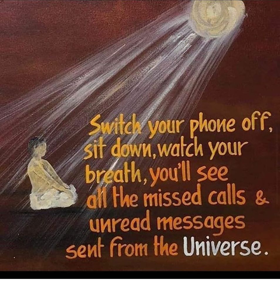 traduction: «éteins» ton téléphone, assis-toi, observe ta respiration, et tu découvriras tous les appels manqués et les messages non-lus en provenance de l’Univers