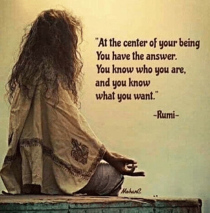 traduction: au centre de ton être, la réponse est là… tu sais qui tu es et tu sais ce que tu veux… – Rumi
