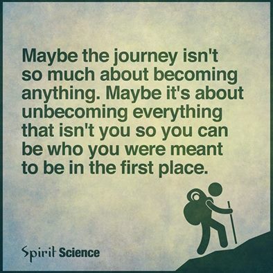 traduction : peut-être que le but dans la vie ne consiste pas à devenir quelque chose ou quelqu’un… peut-être que ça consiste tout simplement à vous délester de tout ce que vous n’êtes pas fondamentalement pour que vous puissiez enfin devenir qui vous étiez censé(e) être initialement…